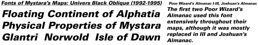 Over the decade and a half and more of Mystara’s official publication, a large selection of fonts were chosen for use in the setting’s maps. This appendix aims to catalogue and present examples of their use, for fun as well as for future reference.