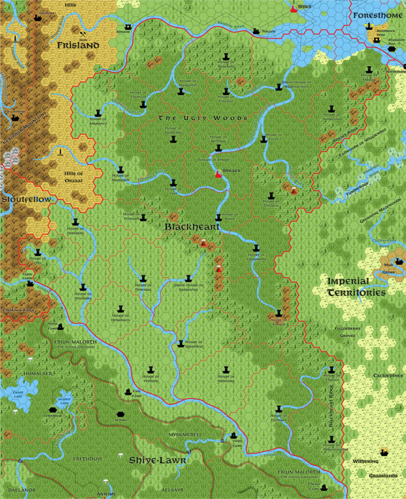 Blackheart, 8 miles per hex