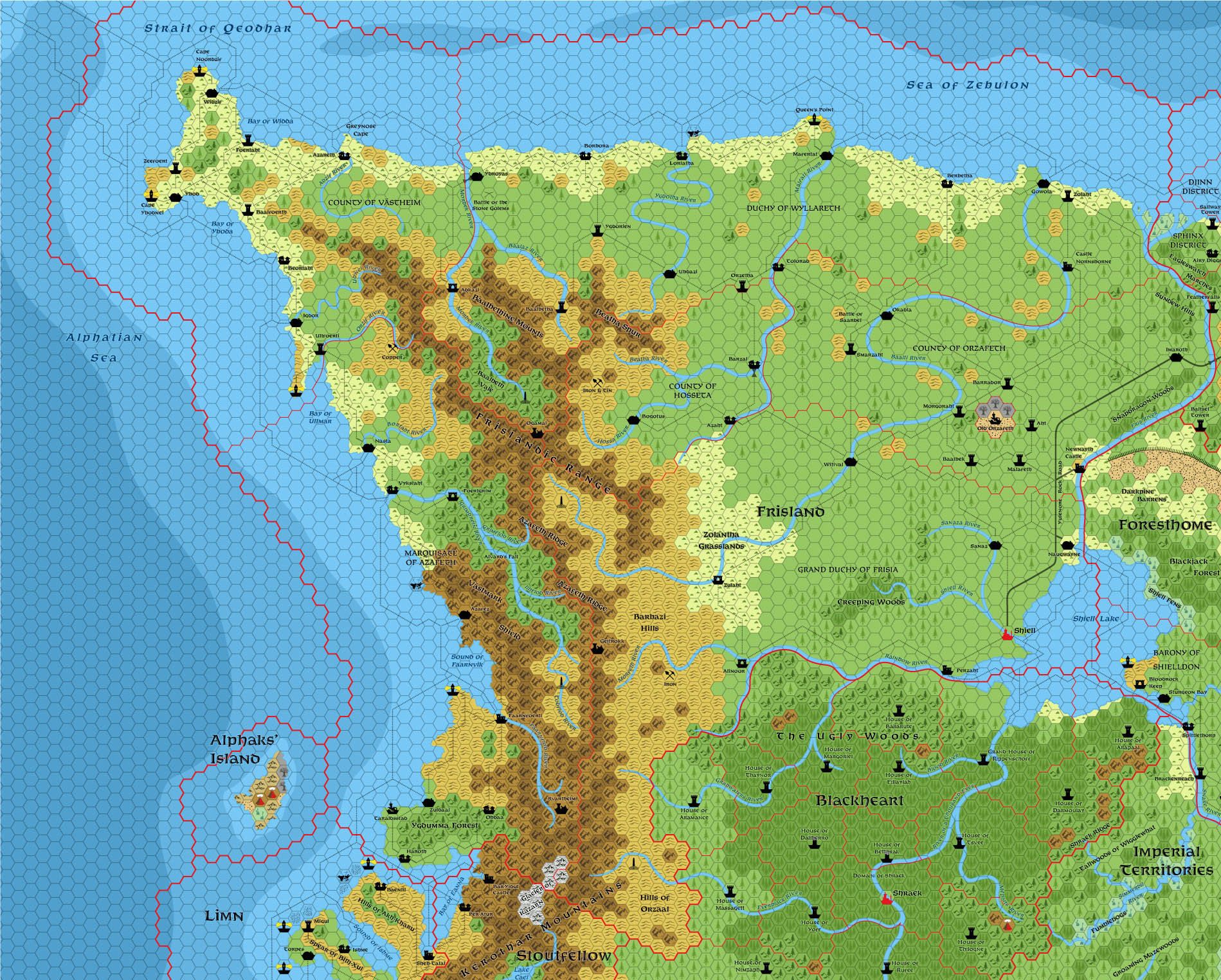 8 mile per hex map of Alphatia in AC 1000.
