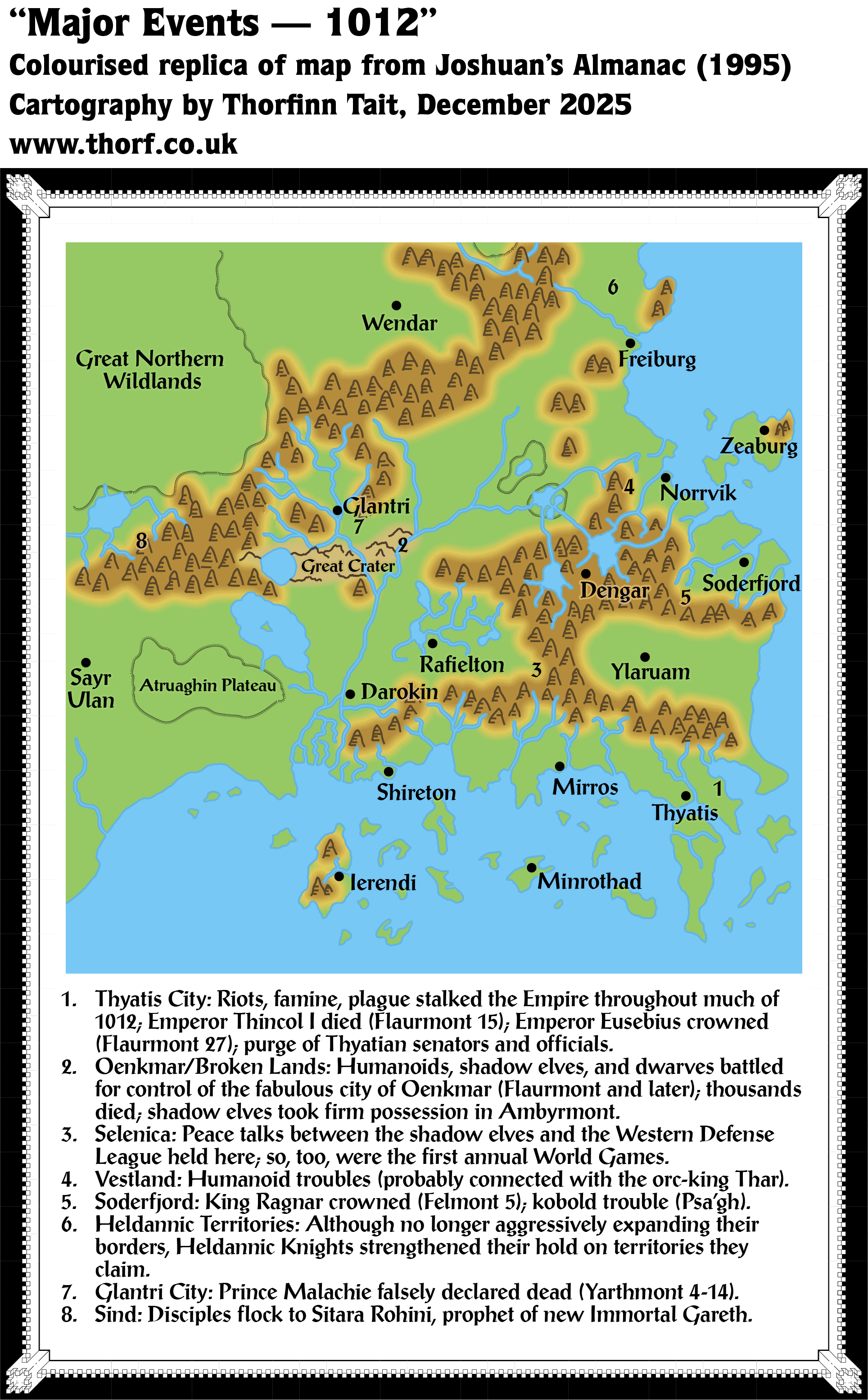 This was one of a pair of maps in Joshuan’s Almanac showing major events in the Known World. Both maps were very similar, with one focusing on 1012 AC, the other on 1013.