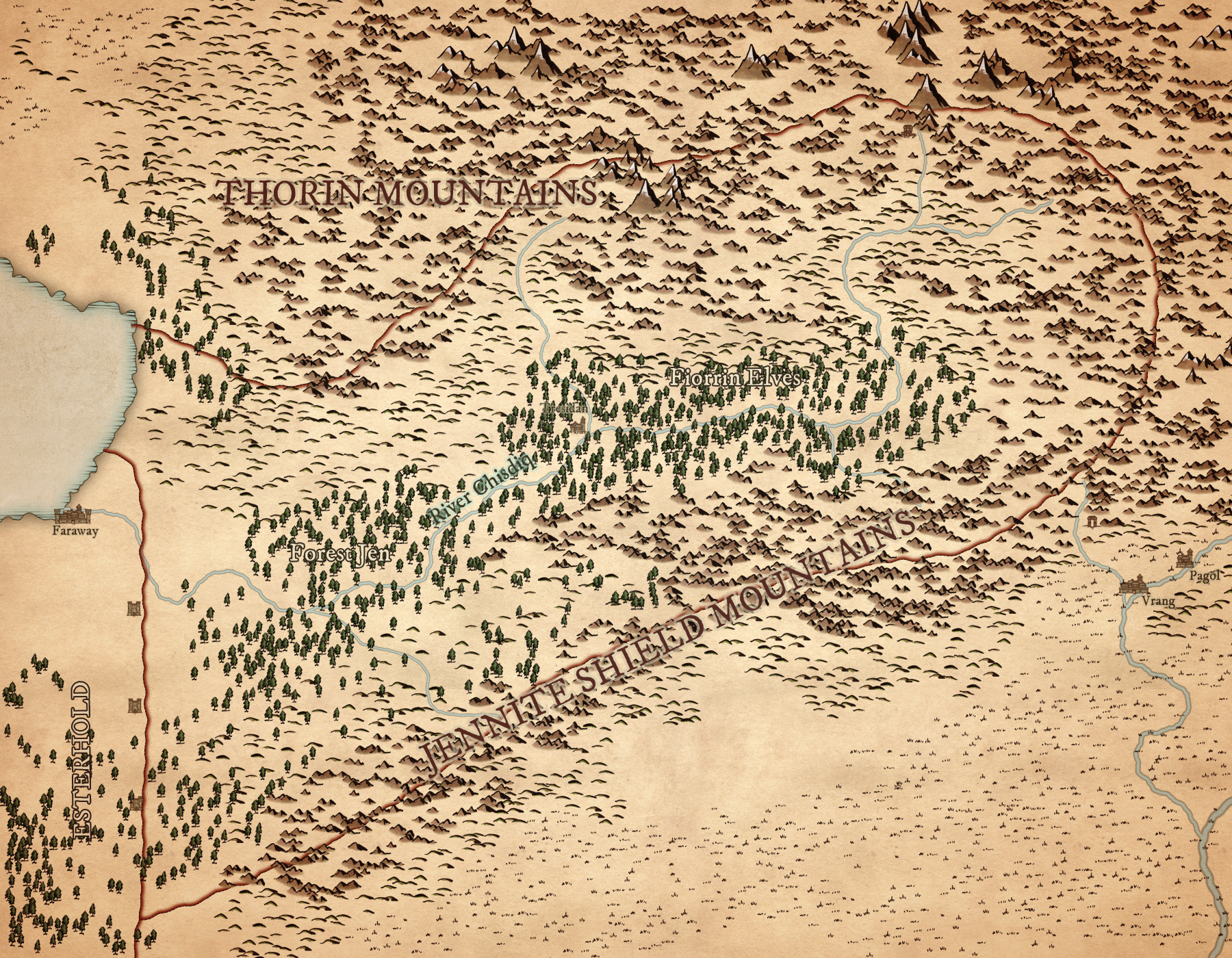 Having worked on the Known World for many years, Mark has more recently become interested in mapping out parts of Skothar — especially the northwestern area of the continent. This map of the area northeast of Esterhold was his first such map.