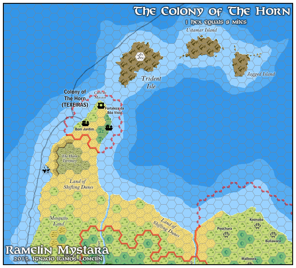 Ramelin’s Colony of the Horn, 8 miles per hex